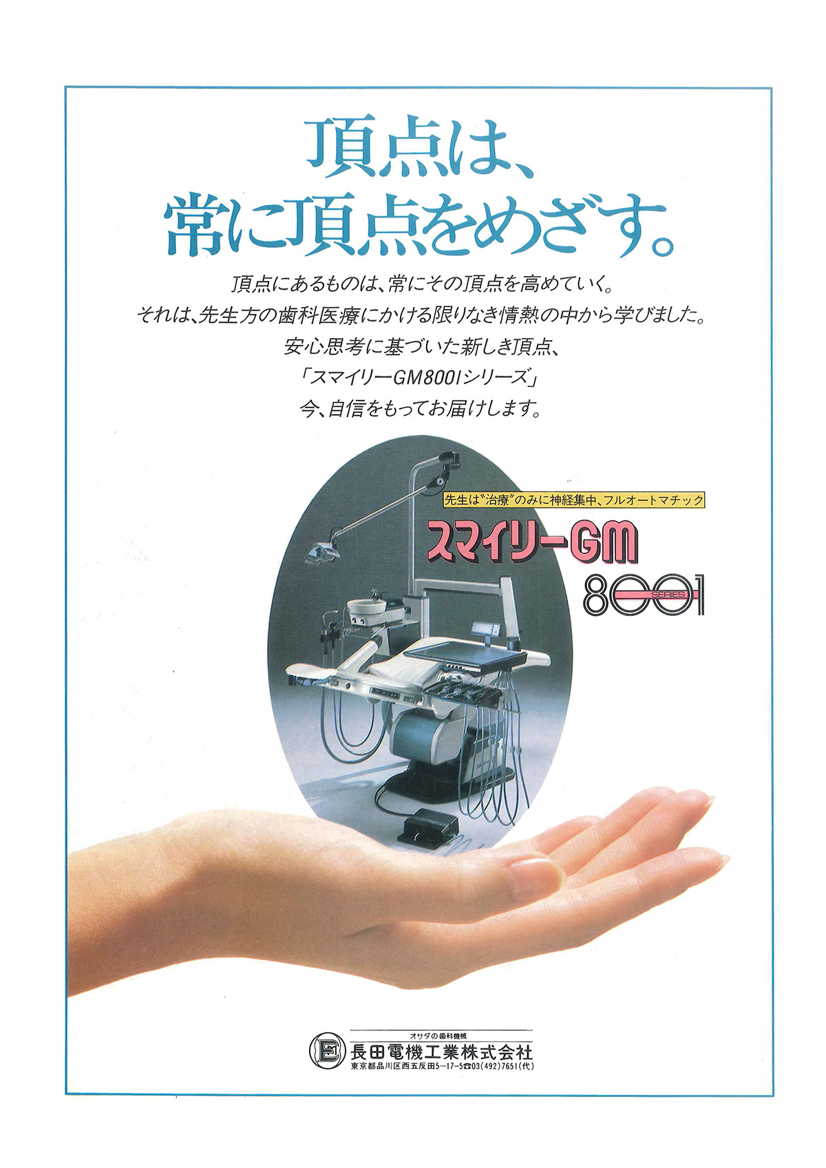 メモリーにより先生ごとの治療ポジションがボタンひとつで得られ、治療のみに集中できる"オールマイティユニット"として発売。
