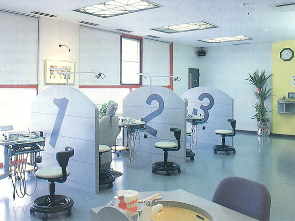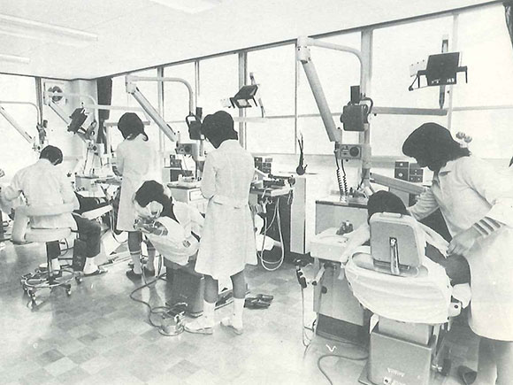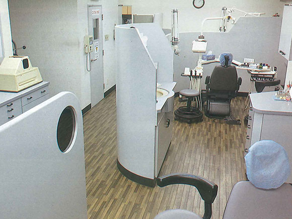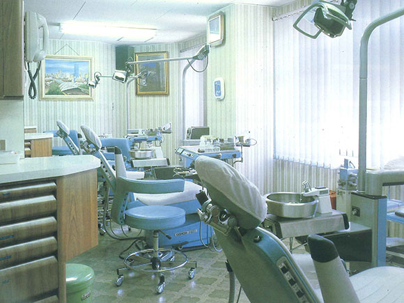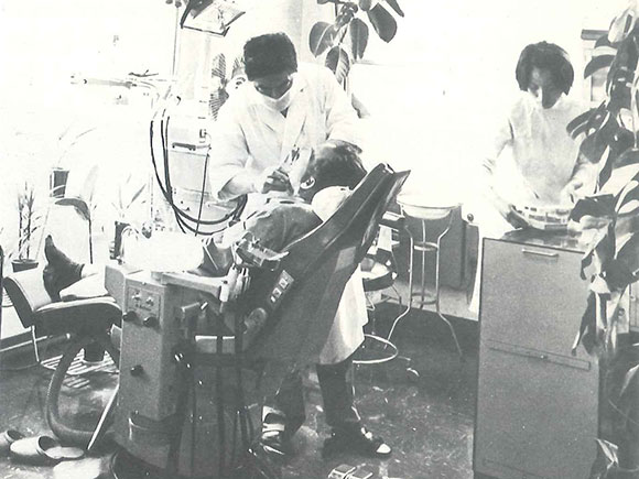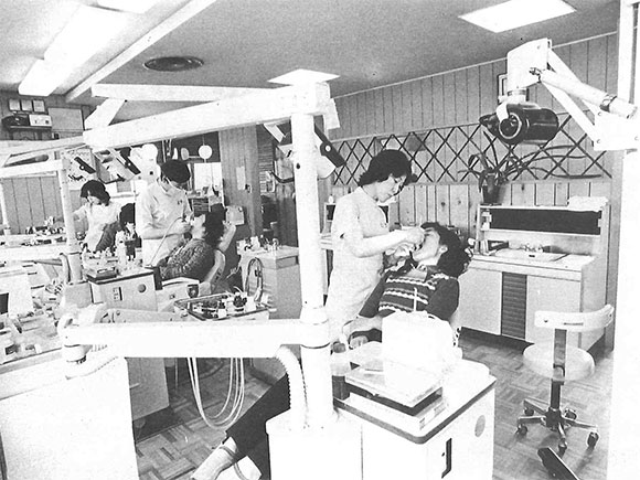 1960年代までは、患者はユニットに座り、術者は立って患者様の口腔内をのぞき込むことが一般的でしたが、1970年代頃から、徐々に現在の「患者は水平位、術者は座位」という診療体勢に移行しました。